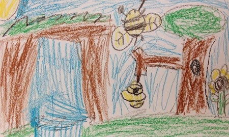 In conjunction with their current promotions and events, our local Hy-Vee asked our students to provide artwork for their dining area. Each student created an original work of art about a bee. They were able to illustrate the bee using any of the materials and techniques that they had learned about over the school year.